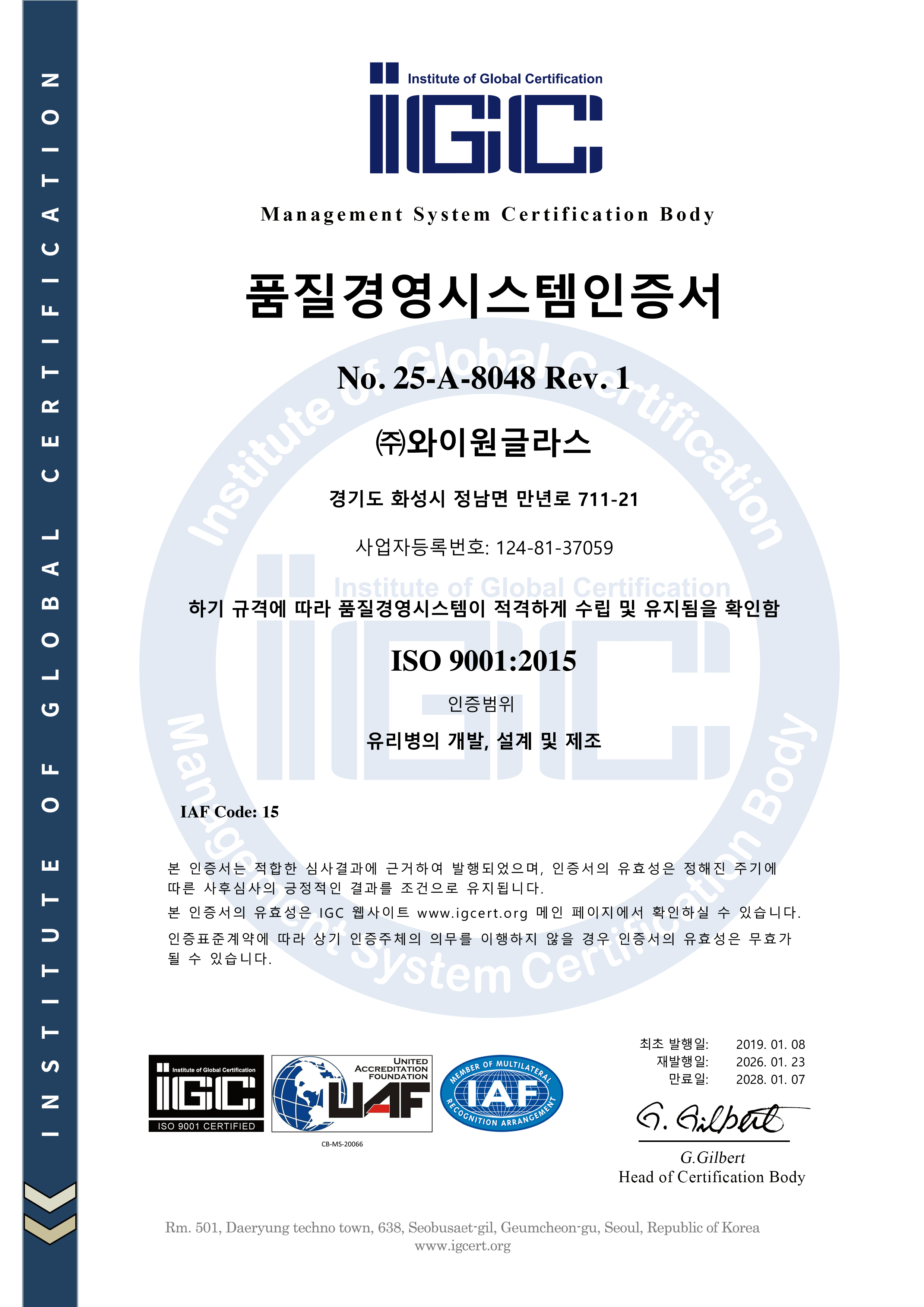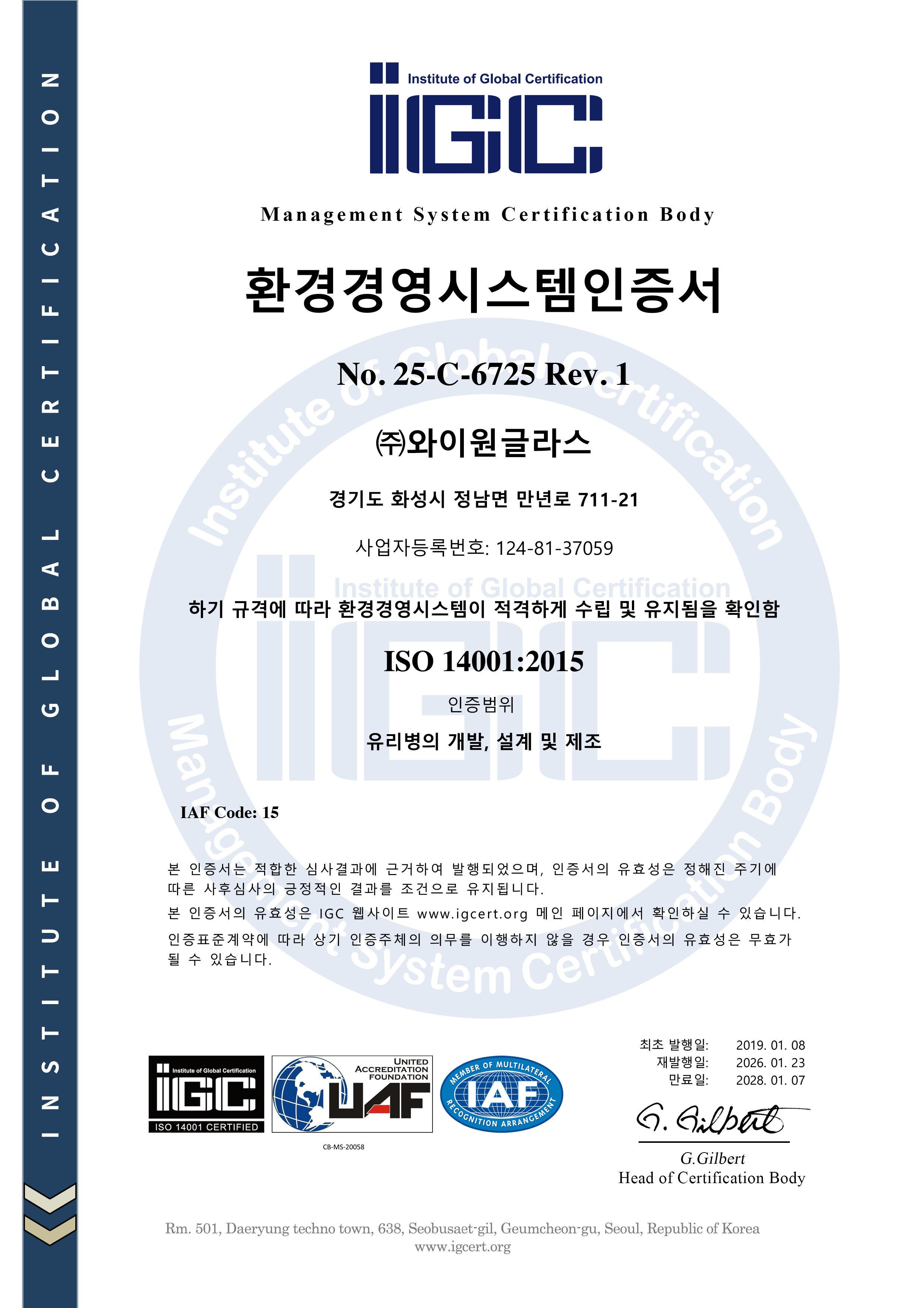 Y1 GLASS는 1972년 설립 이래 반세기 동안 축적된 제조 노하우와 혁신적인 기술력을 바탕으로 화장품 유리 용기의 새로운 기준을 제시해 왔습니다. 파유리 재활용을 통한 자원 순환과 친환경 공정 도입으로 환경 책임을 다하며, 고객의 브랜드 가치를 투명하게 완성하는 글로벌 패키징 솔루션 파트너입니다.